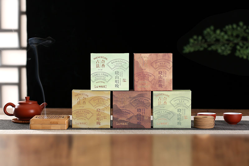 品茶是清事,若無好香在爐,遂乏一份幽趣。品茗焚香已經(jīng)成為一種時尚。制香師立足中國茶文化中五大經(jīng)典茶品:白茶、紅茶、綠茶、黑茶、青茶,設(shè)計了五款香品:白茅稈、畫紅眉、芳草綠、黑月沉、醉青閨,每個名字都自帶意境。